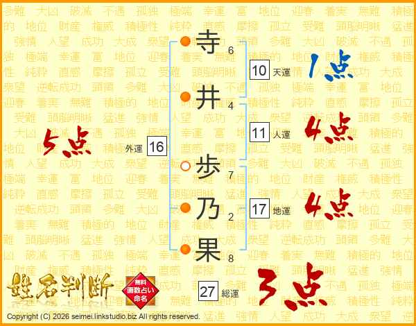 寺井歩乃果さんの総運は27画の3点!