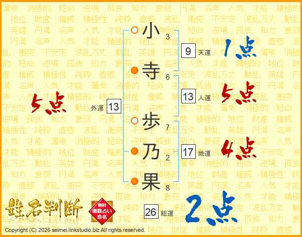 小寺歩乃果さんの総運は26画の2点!