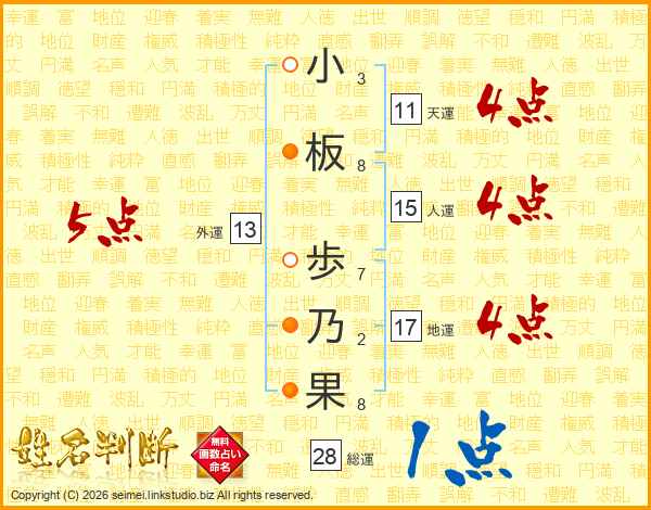 小板歩乃果さんの外運は13画の5点!