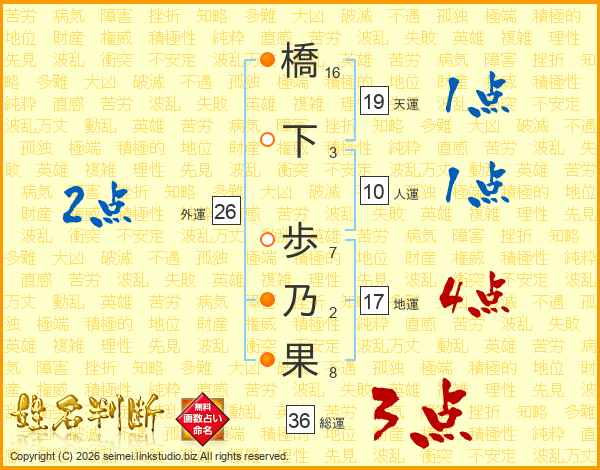 橋下歩乃果さんの外運は26画の2点!
