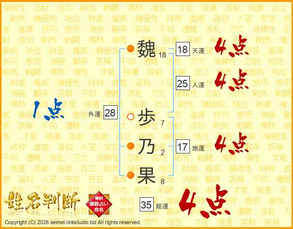 魏(18画) 歩(7画)乃(2画)果(8画)