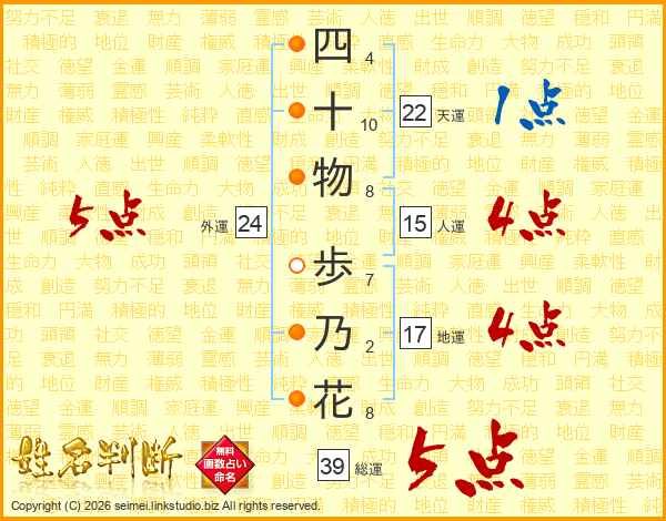 四十物歩乃花さんの総運は39画の5点!