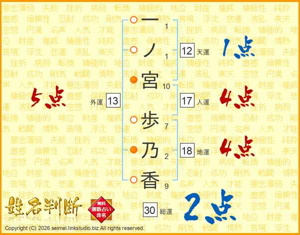 一ノ宮歩乃香さんの総運は30画の2点!