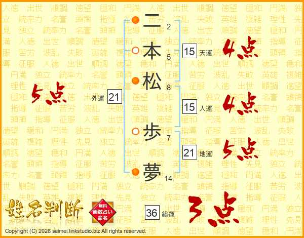 二本松歩夢さんの人運は15画の4点!