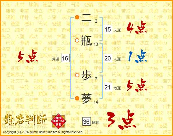 二瓶歩夢さんの総運は36画の3点!