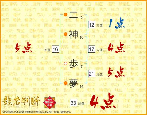 二神歩夢さんの総運は33画の4点!