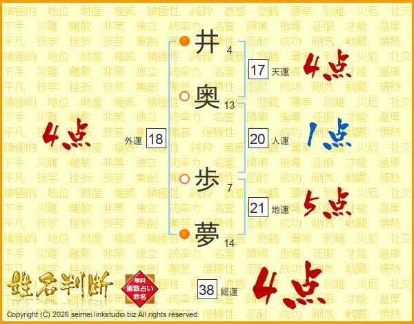 井奥歩夢さんの総運は38画の4点!