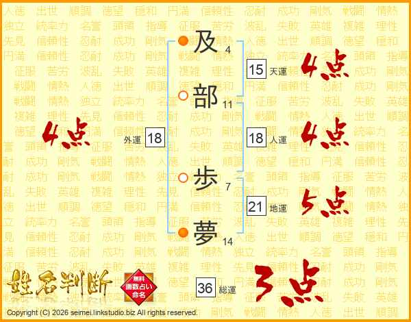 及部歩夢さんの人運は18画の4点!