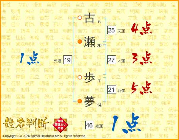 古瀬歩夢さんの総運は46画の1点!