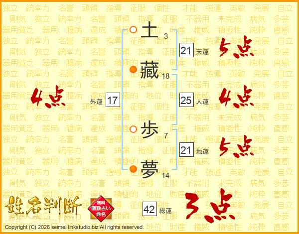 土藏歩夢さんの天運は21画の5点!