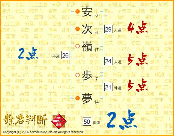安次嶺歩夢さんの天運は29画の4点!