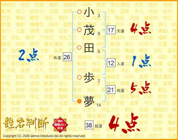 小茂田歩夢さんの総運は38画の4点!