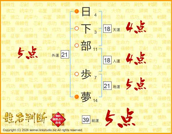 日下部歩夢さんの総運は39画の5点!