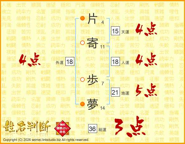 片(4画)寄(11画) 歩(7画)夢(14画)