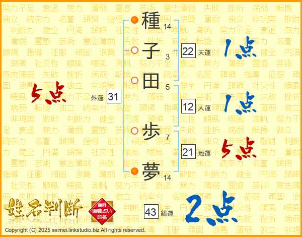 種子田歩夢さんの地運は21画の5点!