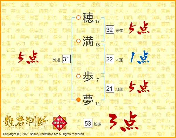 穂満歩夢さんの天運は32画の5点!