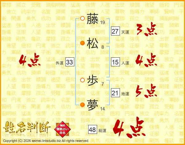 藤松歩夢さんの総運は48画の4点!