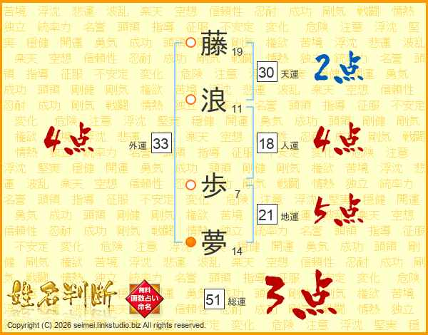 藤(19画)浪(11画) 歩(7画)夢(14画)