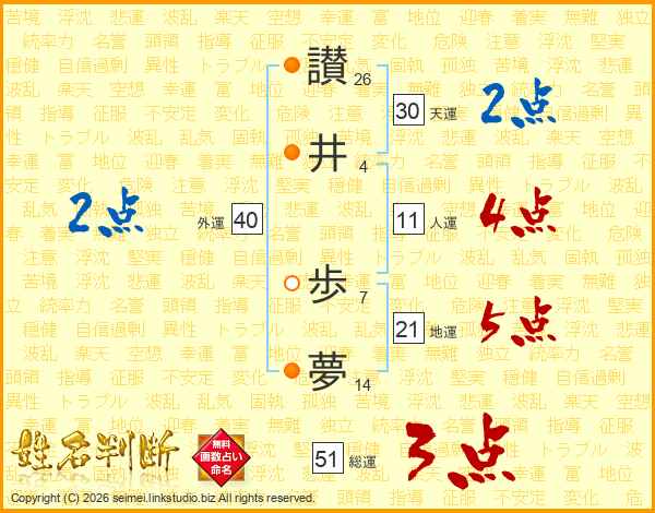 讃井歩夢さんの総運は51画の3点!