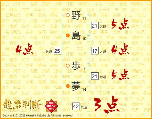野島歩夢さんの地運は21画の5点!
