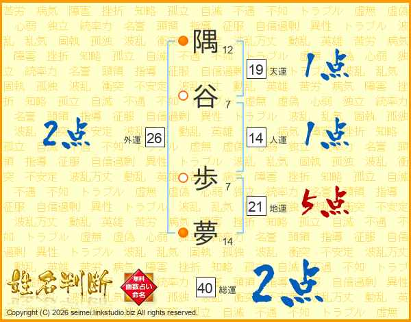 隅谷歩夢さんの地運は21画の5点!