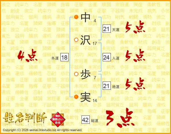 中沢歩実さんの人運は24画の5点!