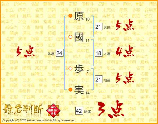 原國歩実さんの外運は24画の5点!
