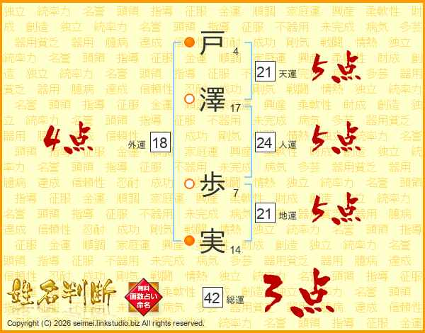 戸澤歩実さんの人運は24画の5点!