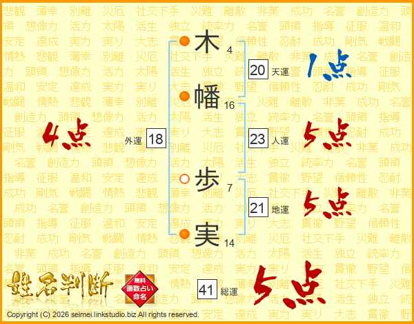 木(4画)幡(16画) 歩(7画)実(14画)