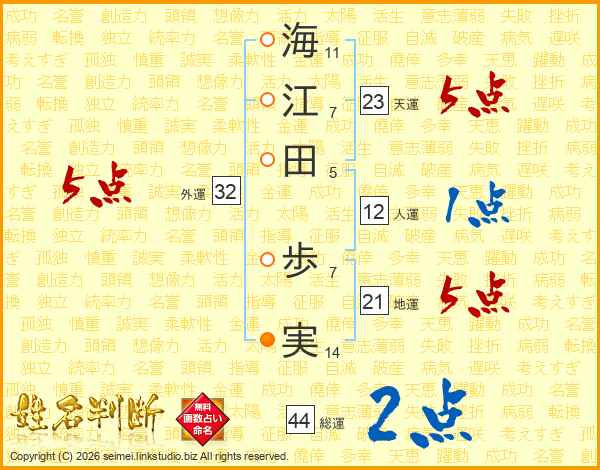 海江田歩実さんの総運は44画の2点!