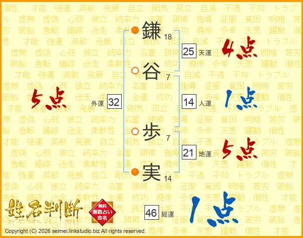 鎌谷歩実さんの地運は21画の5点!