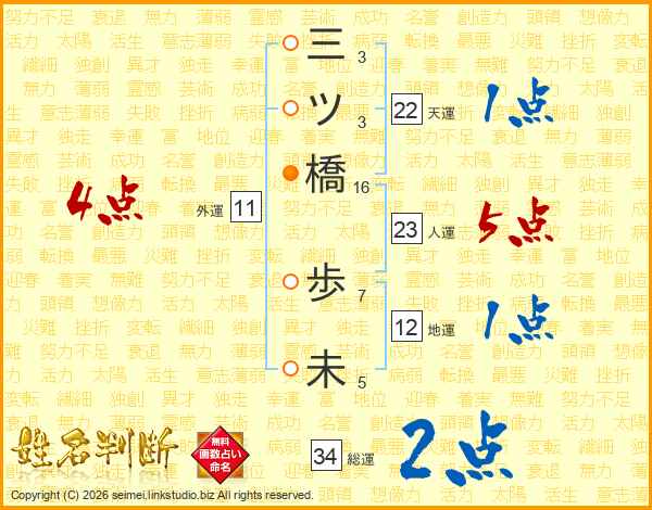三(3画)ツ(3画)橋(16画) 歩(7画)未(5画)