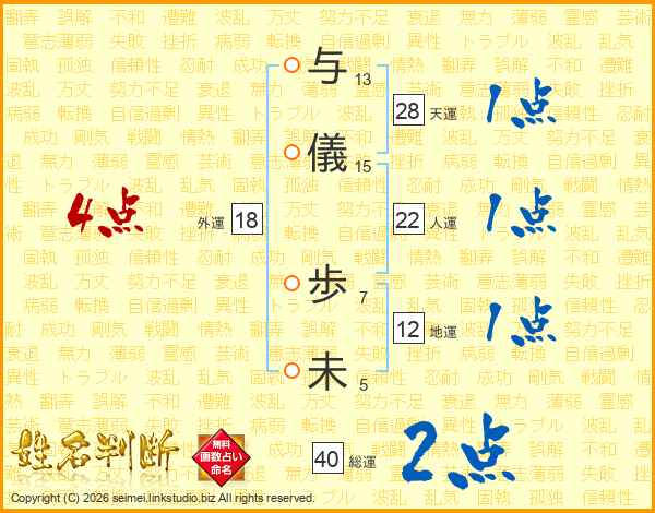 与儀歩未さんの外運は18画の4点!