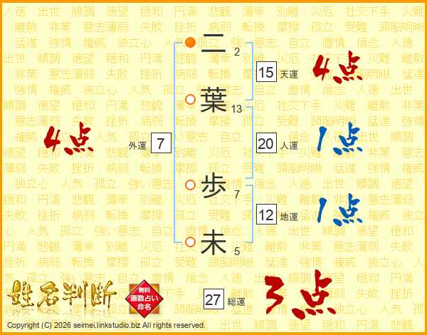 二葉歩未さんの総運は27画の3点!