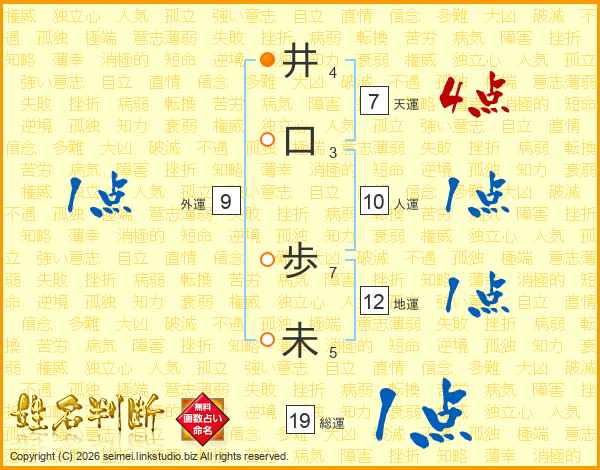 井(4画)口(3画) 歩(7画)未(5画)