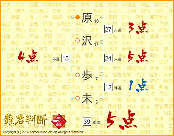原沢歩未さんの総運は39画の5点!