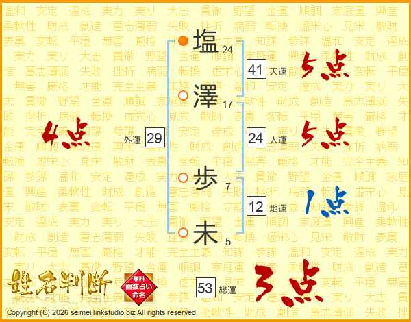 塩(24画)澤(17画) 歩(7画)未(5画)