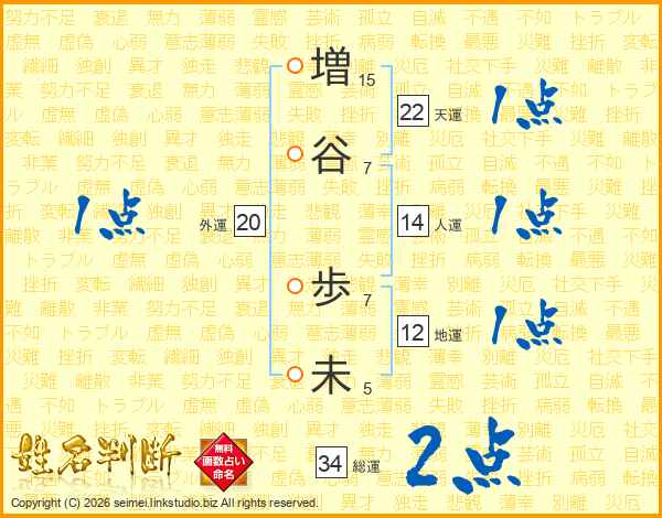 増(15画)谷(7画) 歩(7画)未(5画)
