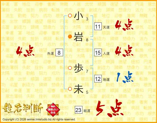 小岩歩未さんの総運は23画の5点!