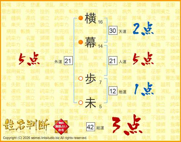 横幕歩未さんの人運は21画の5点!