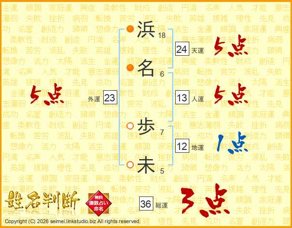 浜名歩未さんの外運は23画の5点!