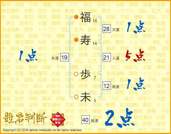 福(14画)寿(14画) 歩(7画)未(5画)