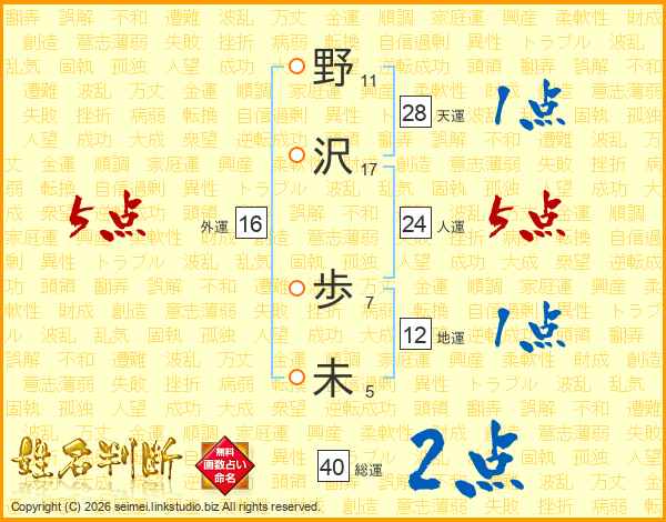野沢歩未さんの人運は24画の5点!