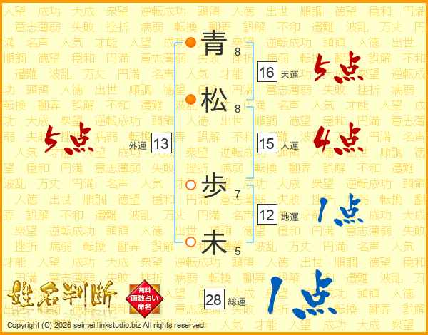 青(8画)松(8画) 歩(7画)未(5画)
