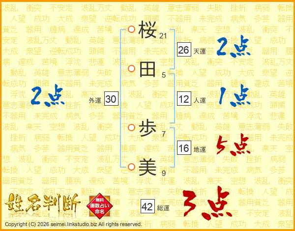 桜田歩美さんの天運は26画の2点!