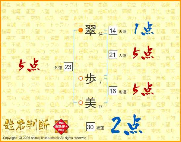 翠(14画) 歩(7画)美(9画)