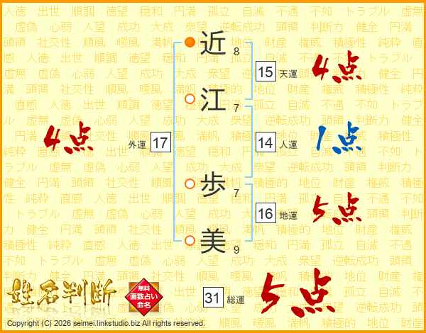 近(8画)江(7画) 歩(7画)美(9画)