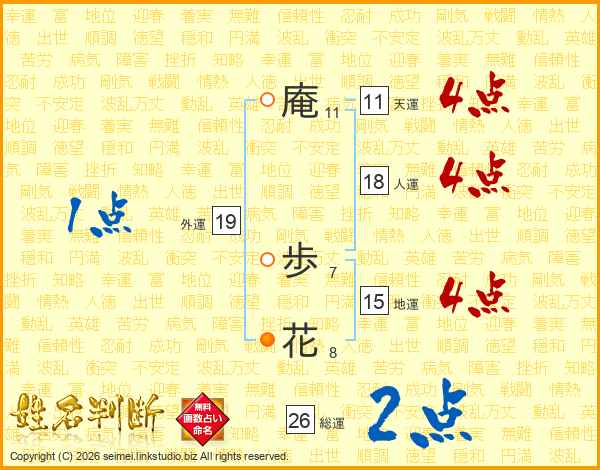 庵(11画) 歩(7画)花(8画)