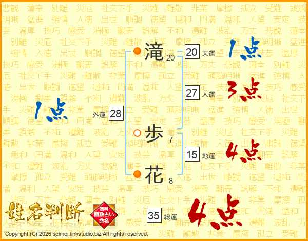 滝歩花さんの総運は35画の4点!