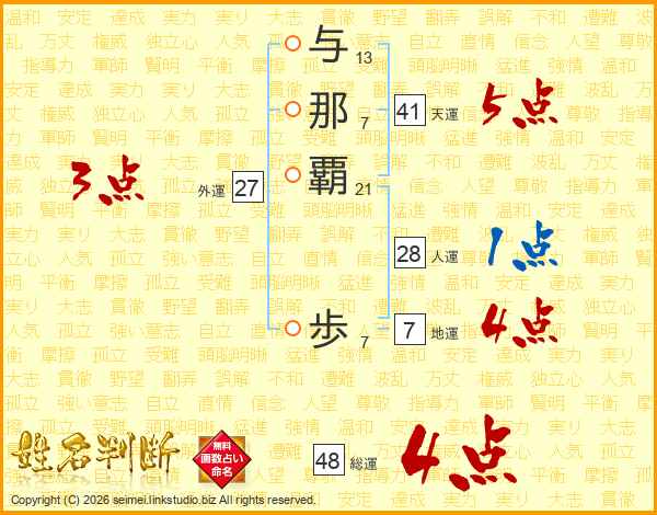 与那覇歩さんの総運は48画の4点!